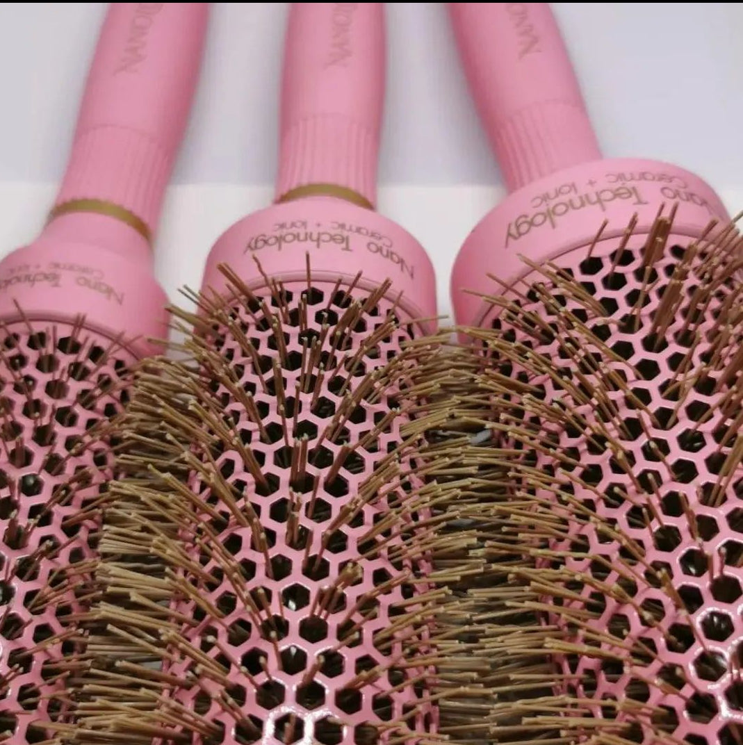 Bouncy blow-dry to smooth straight hair. The Nanolocks Blow-Out brushes won’t disappoint. Set of 3 large, medium and small brushes included with velvet pouch.